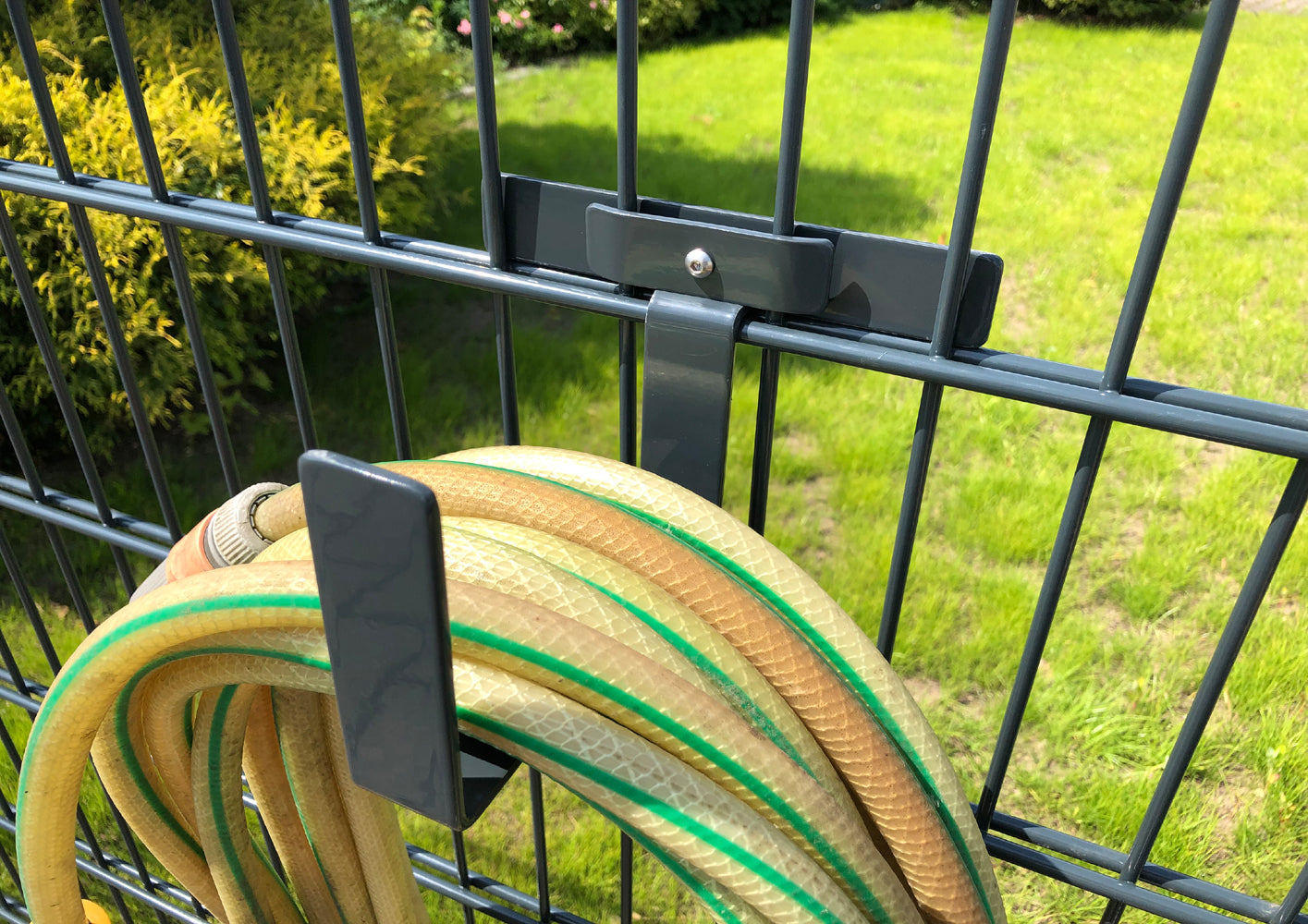 Installatie is snel. Direct aan het hekwerk. Schroeven vast. Klaar. Minimale inspanning. De Slanghouder vereist geen onderhoud. Een kleine investering voor langdurige orde. De Slanghouder. Van Hek-Kopen.